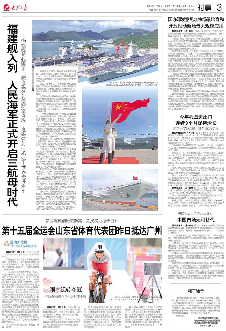 本报广州11月7日电 今天下午,第十五届全运会山东省代表团抵达广州。本届全运会是我国体育发展成就的集中展示,也是对山东体育工作的全面回顾。目前,预赛全部结束,预赛决赛正在陆续进行中。我省备赛工作进展顺利。第十五届全运会山东代表团主要有以下特点:一是参赛规模创历史新高。本届全运会共有34个大项、53个分项、419个小项。我省共有960名运动员获得33个大项、48个分项、328个小项的决赛资格,28支集体球类运动队全部晋级决赛阶段比赛。参与人数和参赛作品数均达到r成绩高,位居全国前列。二是参赛队伍结构合理。代表团共有男运动员519人,女运动员441人。运动员年龄结构涵盖广泛,平均年龄21.35岁。其中,首次参加全运会的运动员占60%以上,显示了我省体育人才的巨大储备和可持续发展潜力。三是竞争实力不断提升。代表团成员中包括多名在奥运会、世锦赛、全运会等重大赛事中取得优异成绩的运动员。备赛期间,我省在多项赛事中保持竞争优势,主要项目的主力运动员顺利进入决赛,为实现比赛目标奠定了基础。 11月9日,山东代表团将展现实力开幕式上,大家精神抖擞,锐意进取,士气高昂。 (本报十五运会特约记者 于晓波 陆鹏报道)